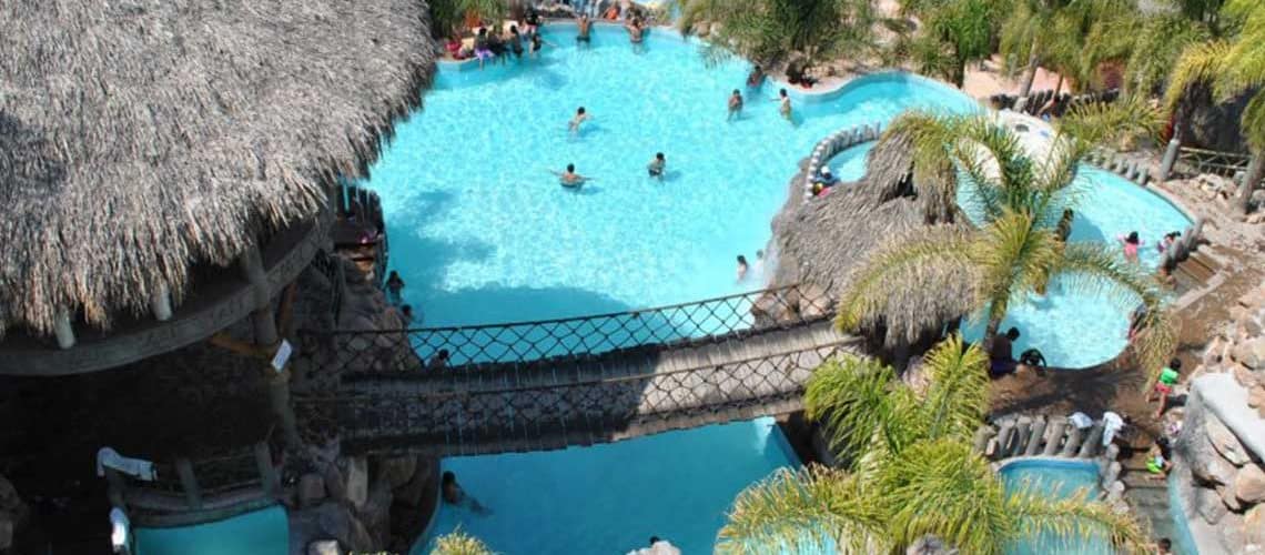 - En el parque podrás disfrutar de 2 grandiosas albercas, una de ellas con agua ideal para refrescarte y con área de chapoteadero para los pequeños de la casa. Siendo la segunda alberca más profunda con agua a una temperatura aproximada de hasta 80°, con cuevas artificiales y aguas termales. Esta área de las albercas se encuentra rodeada de palapas y algunos puentes colgantes desde donde podrás apreciar bonitas vistas de todo este lugar.
