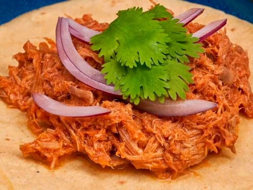 También encontraras platillos como Cochinita pibil un guisado que  consta de carne de cerdo con un adobo en tacos acompañados de cebolla morada y salsa de habanero.